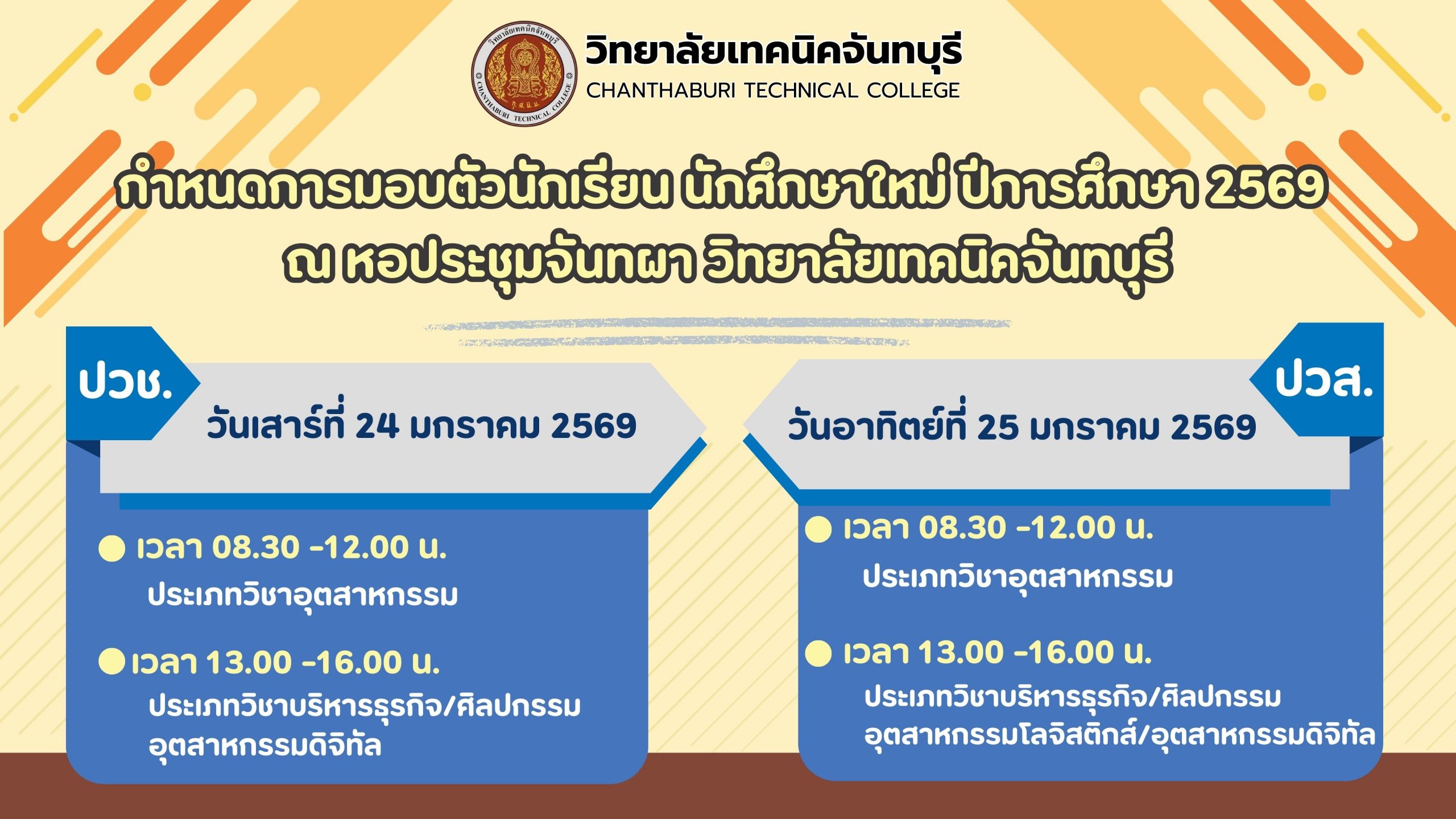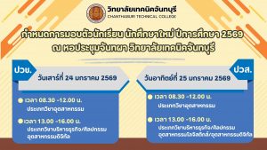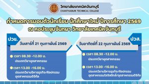 วันอังคารที่ 30 ธันวาคม 2568นายกมล เรียงไธสง ผู้อำนวยการวิทยาลัยเทคนิคจันทบุรี มอบหมายให้นายชูชาติ รูปงาม รองผู้อำนวยการ ...