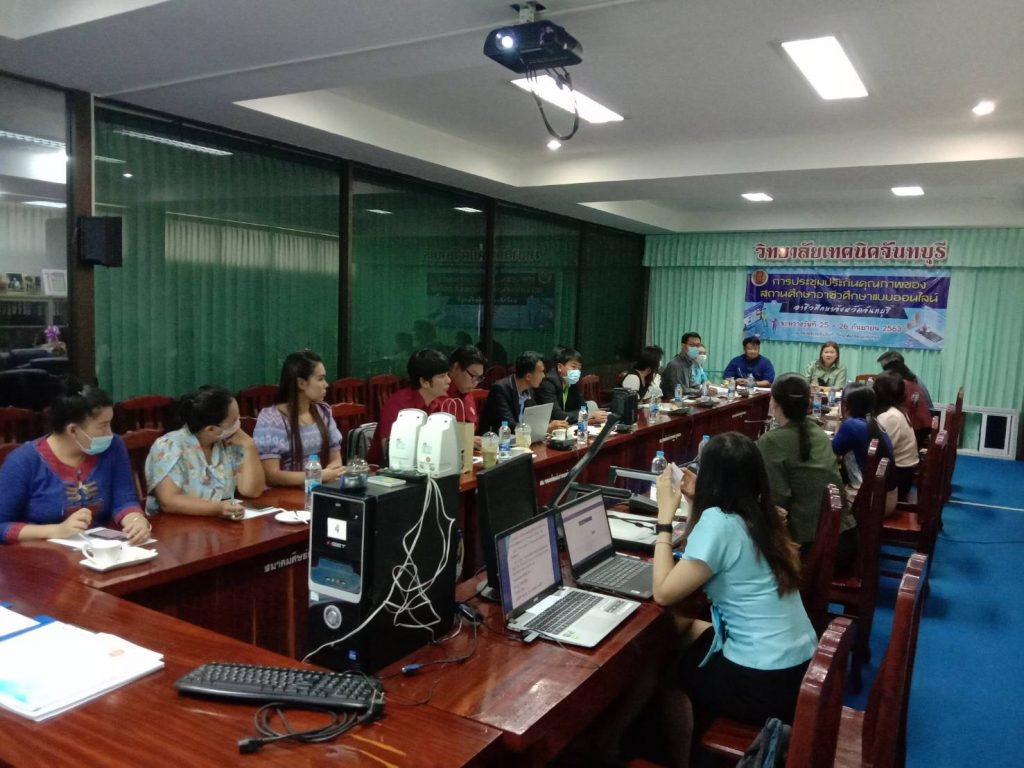 วันศุกร์ที่ 25 กันยายน 2563 เวลา 13.00 น. นางสาวสิเรียม พวงกัน รองผู้อำนวยการวิทยาลัยสารพัดช่างจันทบุรี ในนามประธานคณะกรรมการประเมินผลสัมฤทธิ์การดำเนินงานของอาชีวศึกษาจังหวัดจันทบุรี เป็นประธานร่วมการประชุมประกันคุณภาพของสถานศึกษาอาชีวศึกษาแบบออนไลน์ โดยนายณรงค์ สุขเจริญ ผู้อำนวยการวิทยาลัยเทคนิคจันทบุรีในนามประธานอาชีวศึกษาจังหวัดจันทบุรี มอบหมายให้ นายวิรัตน์ เศรษฐสถาพร รองผู้อำนวยการฝ่ายแผนงานและความร่วมมือ พร้อมด้วยนางทิพย์สุคนธ์ คลังเกษม รองผู้อำนวยการฝ่ายวิชาการ ผู้แทนครูและบุคลากร ให้การต้อนรับและเข้าร่วมการประชุมอย่างพร้อมเพรียง ณ ห้องประชุมอินจันท์ วิทยาลัยเทคนิคจันทบุรี