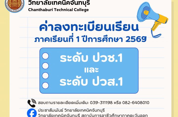 ค่าลงทะเบียนเรียน 1/2569 ระดับ ปวช.1 และ ปวส.1