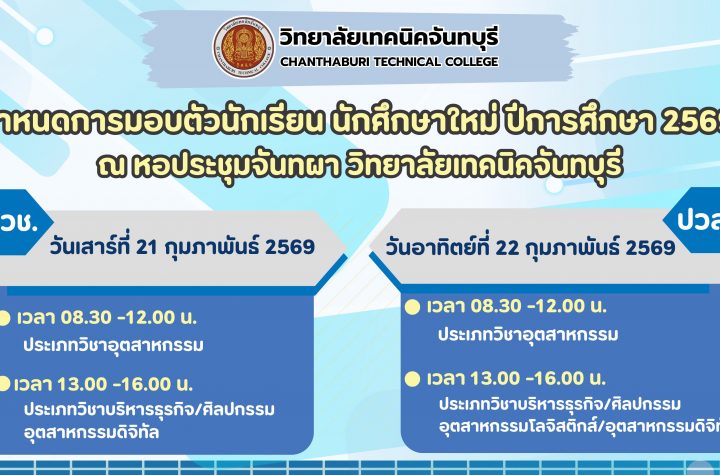 กำหนดการมอบตัวนักเรียน นักศึกษาใหม่ปีการศึกษา 2569 (โควตารอบ 2)
