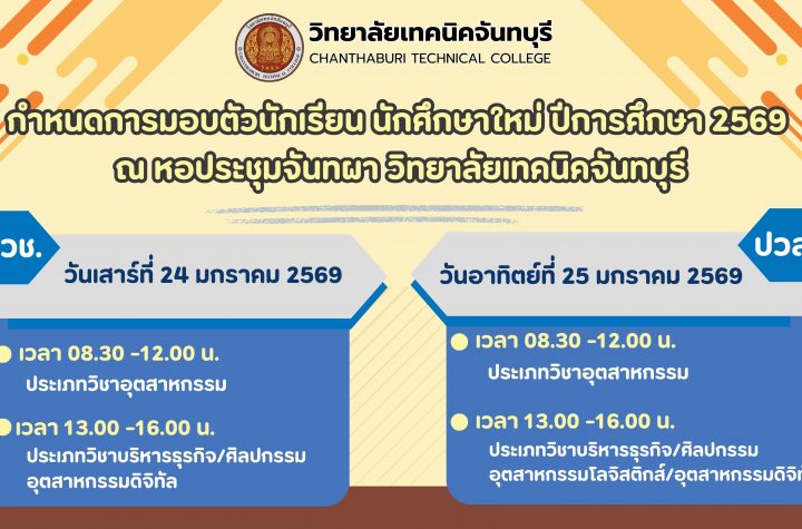 กำหนดการมอบตัวนักเรียน นักศึกษา ปีการศึกษา 2569