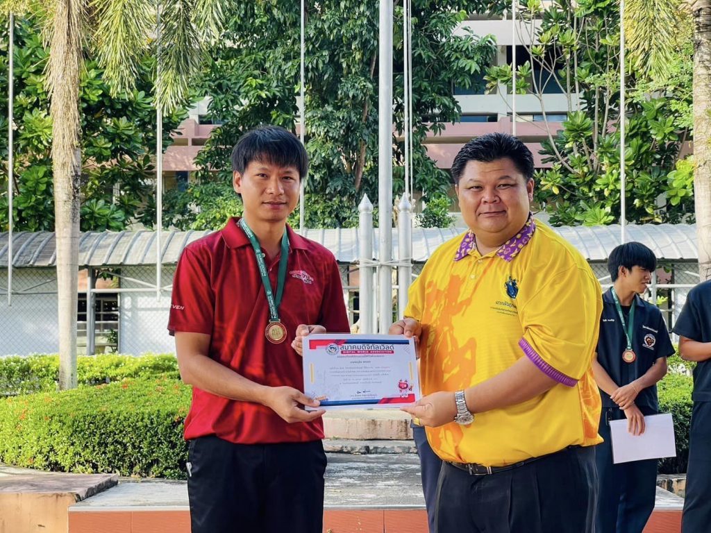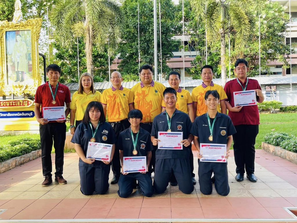 วันพุธที่ 27 พฤศจิกายน 2567 นายกมล เรียงไธสง ผู้อำนวยการวิทยาลัยเทคนิคจันทบุรี พร้อมด้วยคณะผู้บริหาร ร่วมแสดงความยินดี และมอบเหรียญรางวัล พร้อมเกียรติบัตร ให้กับ นักศึกษา และครูผู้ควบคุมทีม “การแข่งขันหุ่นยนต์นานาชาติ WRC 2024 (WORLD ROBOT CONTEST 2024)” ณ อาคารศูนย์การเรียนรู้วิชาชีพเพื่อบริการชุมชน วิทยาลัยเทคนิคจันทบุรี
