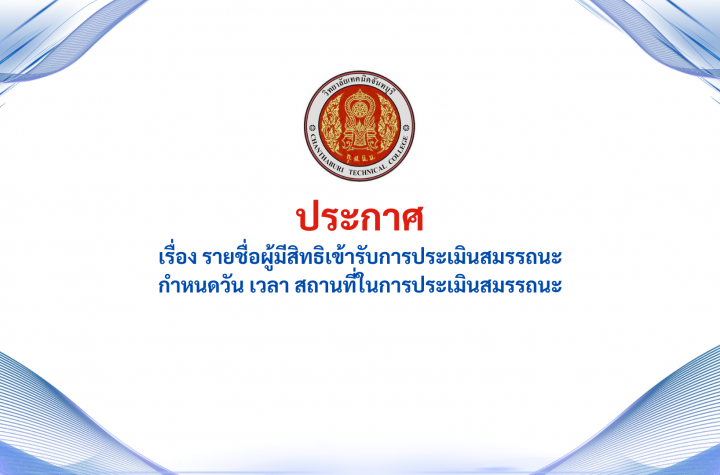 ประกาศ รายชื่อผู้มีสิทธิเข้ารับการประเมินสมรรถนะ