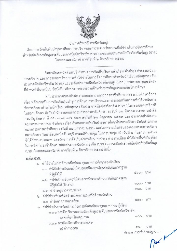 ค่าลงทะเบียนเรียน 2/2568