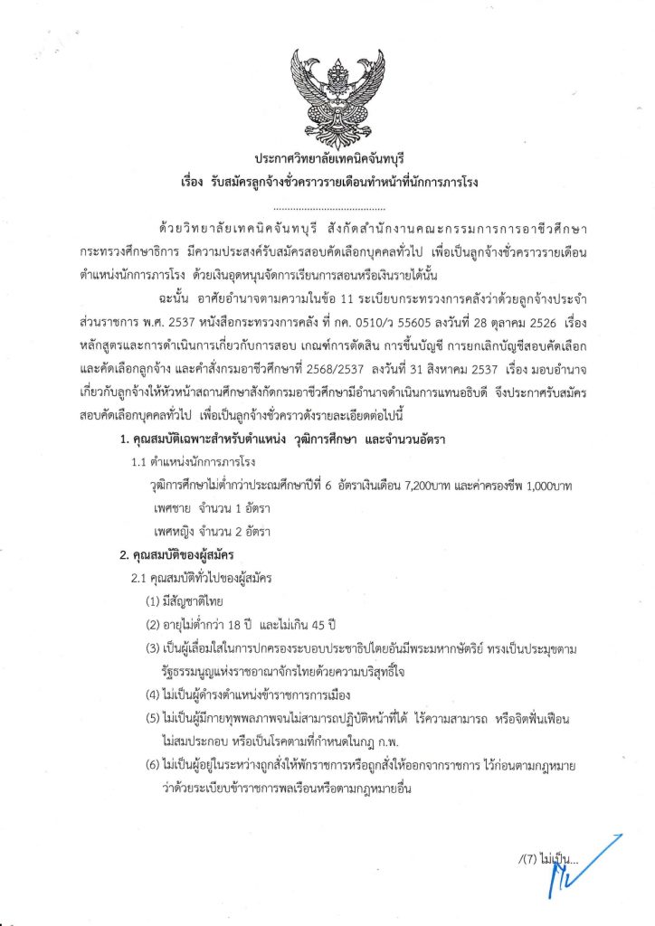 รับสมัครพนักงานราชการทั่วไป (ครู)