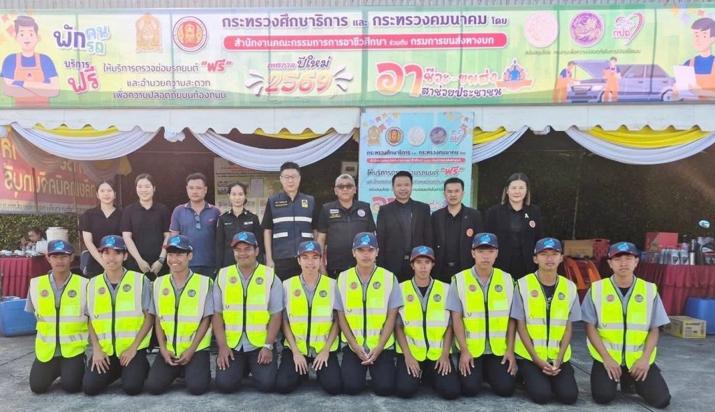 นายกมล เรียงไธสง ผู้อำนวยการวิทยาลัยเทคนิคจันทบุรี มอบหมายให้นายชูชาติ รูปงาม รองผู้อำนวยการวิทยาลัยเทคนิคจันทบุรี พร้อมด้วยคณะผู้บริหาร คณะครู และนักเรียน เข้าร่วมโครงการอาชีวะ – ขนส่ง อาสาช่วยประชาชน เทศการปีใหม่ 2569 โดยมีนายธวัชชัย จันทกิจ นายกเทศมนตรีเมืองท่าช้าง เป็นประธานพิธี ณ บริษัท เนเชอรัล ปิโตรเลี่ยม จำกัด