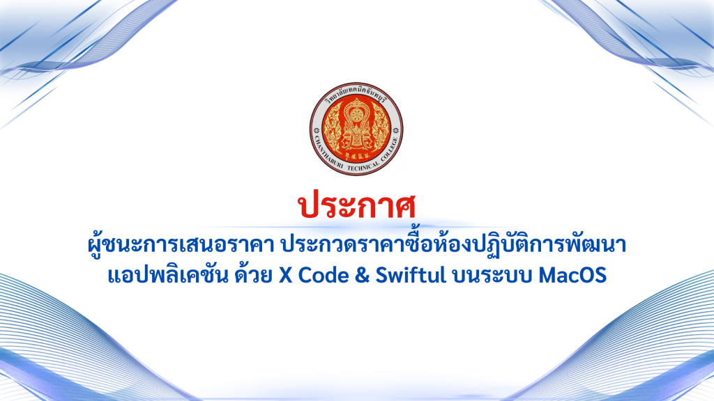 ประกาศ ประกวดราคาซื้อห้องปฏิบัติการพัฒนาแอปพลิเคชัน ด้วย X Code & Swiftul บนระบบ MacOS