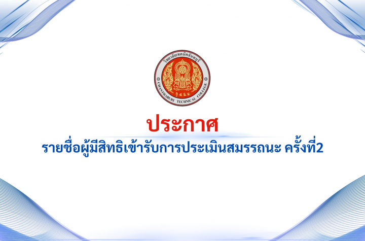 ประกาศ รายชื่อผู้มีสิทธิเข้ารับการประเมินสมรรถนะ ครั้งที่ 2